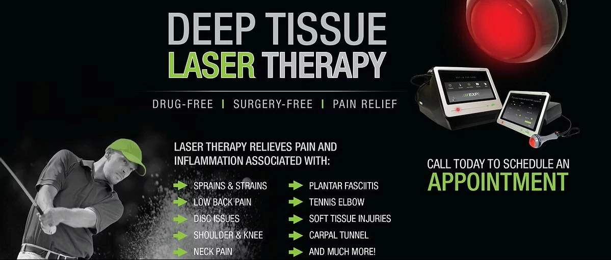 Laser therapy is a non-surgical, painless treatment designed to speed your body’s natural healing process by reducing pain and inflammation. The light energy deeply penetrates tissues to: